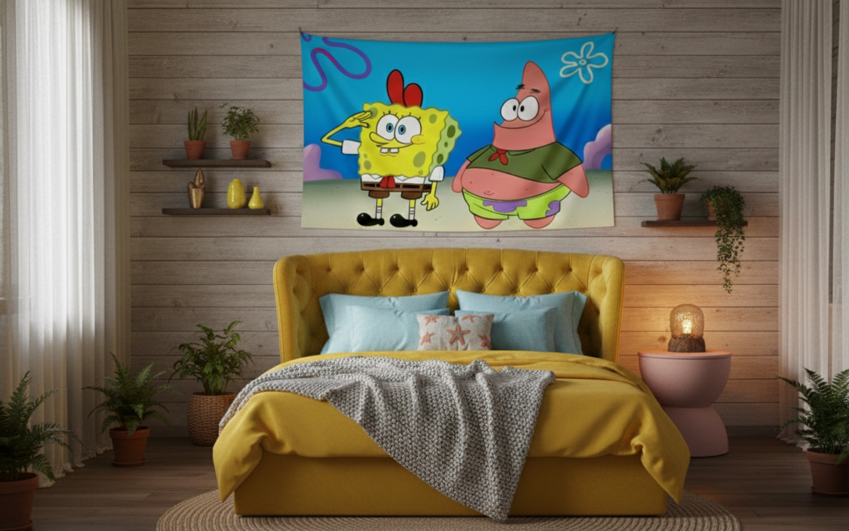 SpongeBob'un eğlenceli dünyası, OceanAura’nın yüksek kaliteli duvar halılarıyla birleşerek odalarınıza neşe ve canlılık katıyor.
